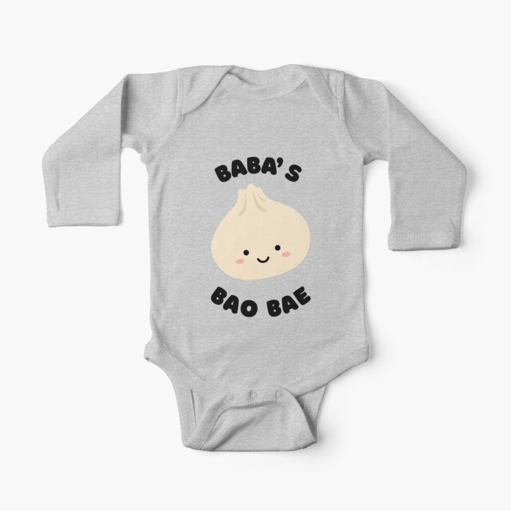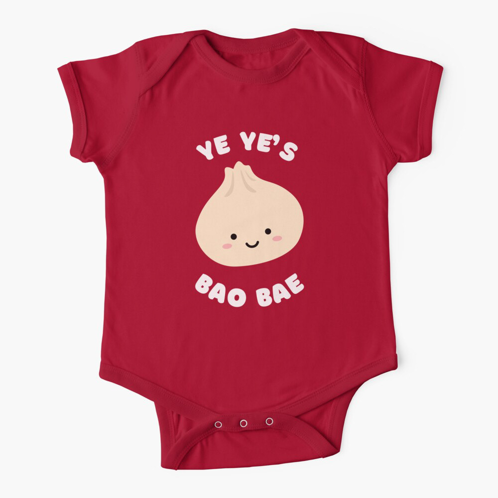 This onesie features a cute illustration of a bao (steamed bun filled with tasty fillings like pork or veggies) and the words "Bao BAE", a play-on-words for "baby". The perfect baby outfit to wear while chowing down on their favourite bao. 宝贝 (bǎo bèi) is a term of endearment in Chinese, meaning "treasure" or "darling".